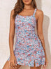 Vintage 2 Piece Tankini Set: Skirtini Tankini, Tankini Top with Bikini Bottom, Ruched Swim Tank Top, Square Neck Tankini Set with Side Slit Skirt, Open Back Bathing Suit, Push Up Bathing Suit with Removable Soft Padding offers great support and enhances your shape